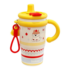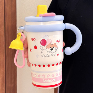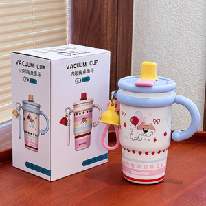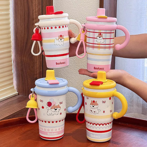 双饮陶瓷内胆保温杯新款卡通手柄水杯大容量女生办公室便携咖啡杯