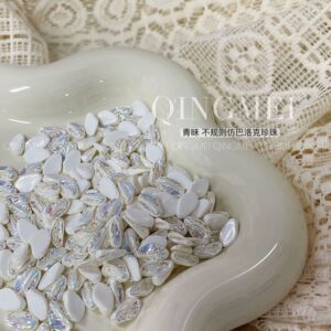 巴洛克珍珠美甲饰品仿真无孔高亮质感异形平底珍珠套盒指甲钻配饰