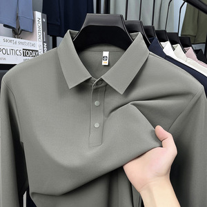 2025秋季新款男士长袖T恤高弹无痕中年休闲纯色翻领打底polo衫男