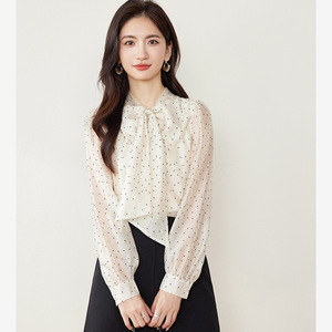 法式波点蝴蝶结飘带衬衫女2025秋装新款轻熟漂亮别致小衫A5833