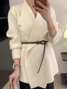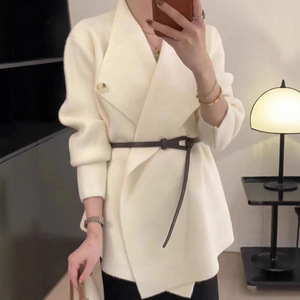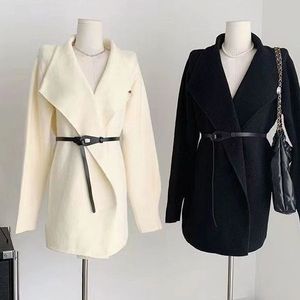 2025秋冬新款韩系风大翻领时尚气质中长款宽松针织毛衣外套女