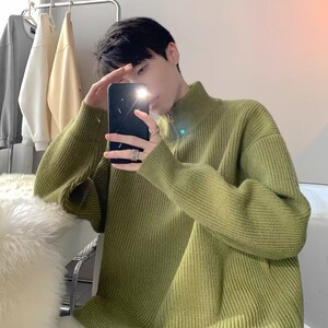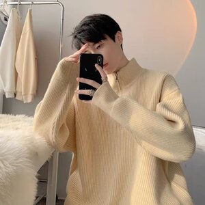 工厂直销新款男士针织衫男春秋款简约纯色半拉链套头毛衣情侣潮款