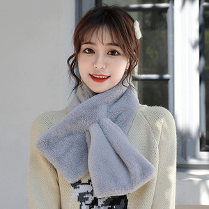 秋冬围巾少女仿兔毛百搭毛绒围脖韩版加厚纯色脖套可爱獭兔毛围巾