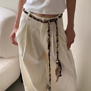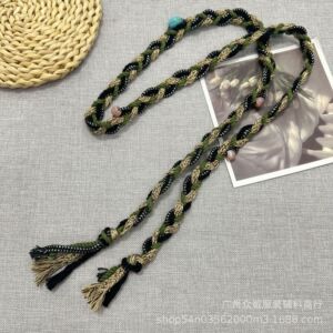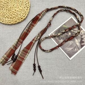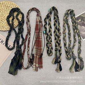 波西米亚复古编织格子布艺麻绳腰带女民族风配裙子设计感腰绳配饰