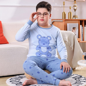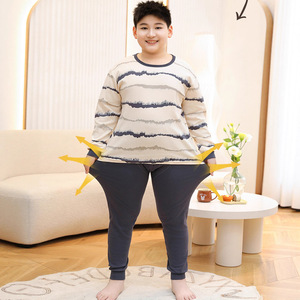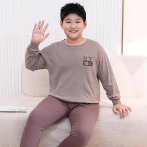 25胖童秋衣秋裤儿童加肥加大家居服中大童睡衣内衣青少年纯棉套装