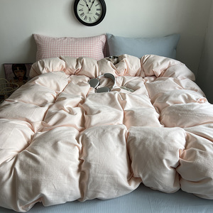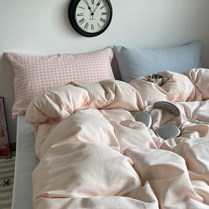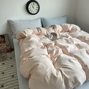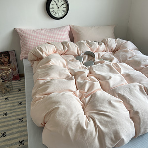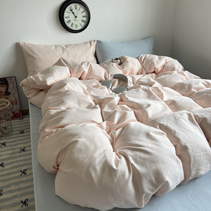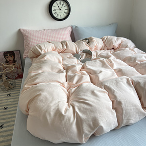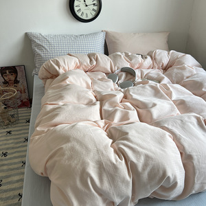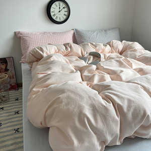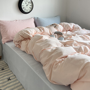 全棉人字纹少女风纯色床上四件套纯棉被套学生宿舍床单被罩三件套