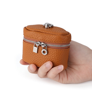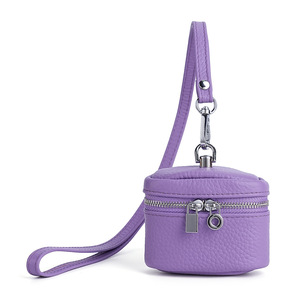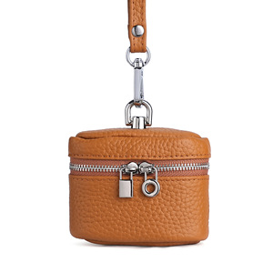新款胸挂口红化妆包挂脖子零钱包耳机收纳包头层牛皮迷你挂饰真皮