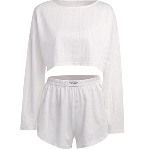 2025女士休闲пижама套装镂空时尚简约宽松套头长袖上衣短裤