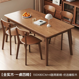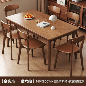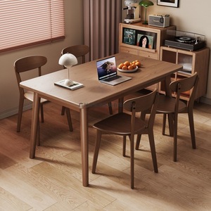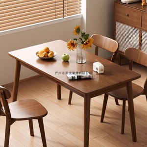实木餐桌吃饭桌子长方形胡桃木色小户型家用简约组合餐桌椅供应厂
