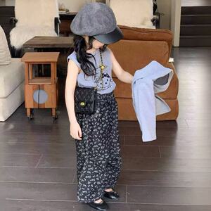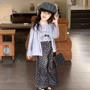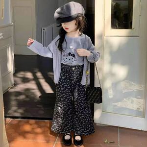女童套装2025春秋新款儿童韩系碎花牛仔裤洋气背心针织开衫三件套