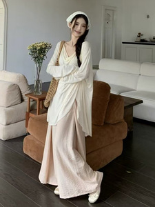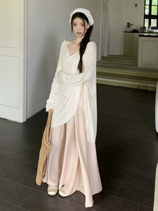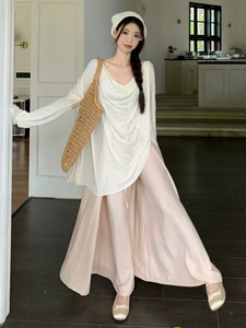 清冷感气质套装女夏季2025新款慵懒风防晒长袖上衣阔腿裙裤两件套