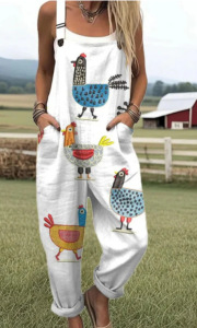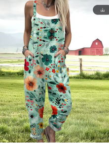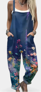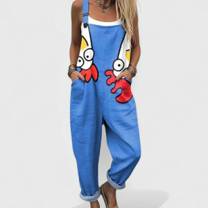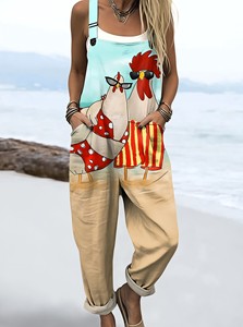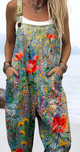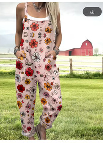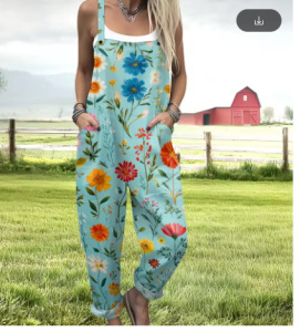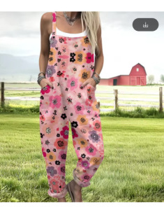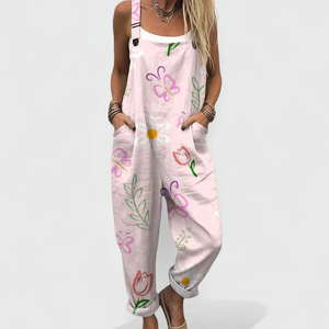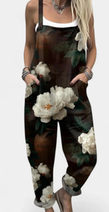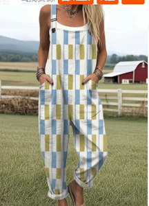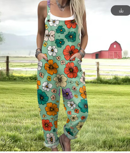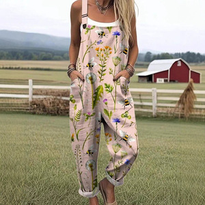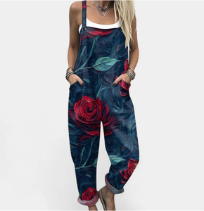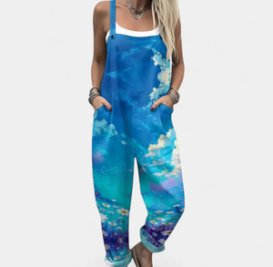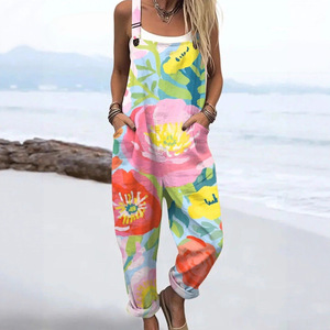 跨境女装亚马逊欧美夏季数码3D印花扣子背带休闲吊带裤