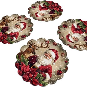 跨境temu新款圆形硅藻泥圣诞桌垫吸水防滑防溅餐垫厨房速干沥水垫