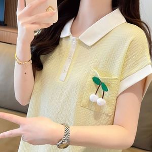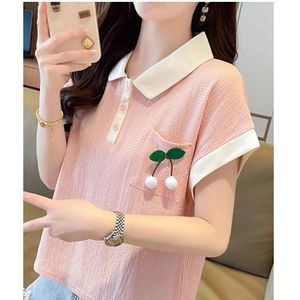 大码肌理感口袋polo领短袖t恤女夏季新款胖mm宽松显瘦遮肉上衣女