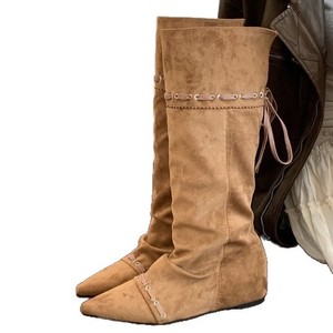 "废土辣妹"内增高西部牛仔靴女秋冬堆堆长筒靴系带显瘦不过膝长靴