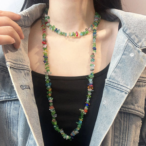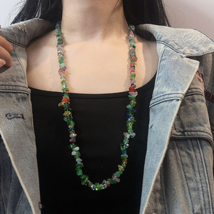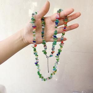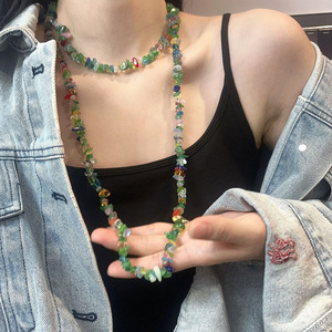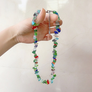 不褪色千禧辣妹彩色碎石项链女美式嘻哈高级锁骨链甜酷天然石颈链