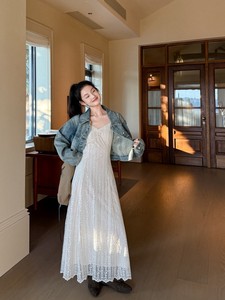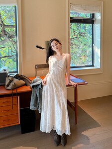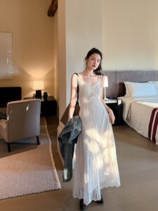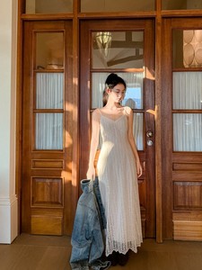 DIGM | 2025秋季法式优雅蕾丝重工绣花收腰吊带裙连衣裙女A10966