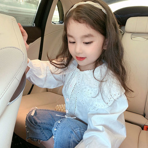 非常鱼儿 女童衬衫春装新款女宝宝娃娃领纯色长袖上衣 RQ189