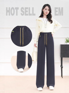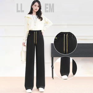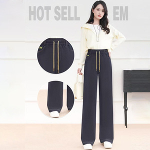 2025秋冬仿牛仔阔腿裤显瘦高腰窄版阔腿裤女休闲直筒裤大码女裤