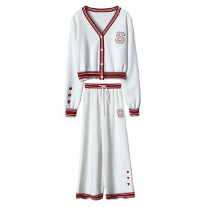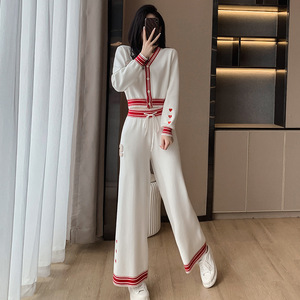 小香风针织套装2025春秋季新款休闲百搭名媛气质上衣阔腿裤两件套