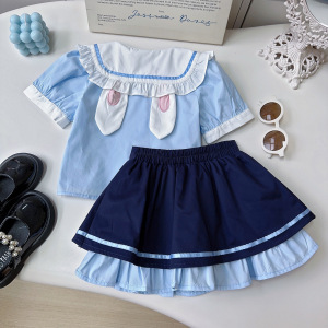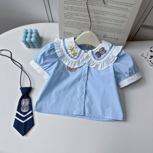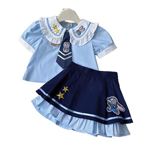 女童学院风套装夏季新款女宝宝朱迪兔子警官短袖上衣裙裤AXB281