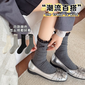 花边波点罗口女中筒潮流饰品袜时尚百搭ins风