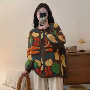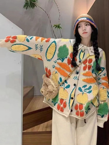 重工提花撞色森系保暖毛衣开衫外套女秋冬2025新款宽松针织衫上衣