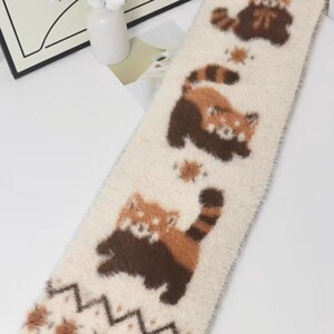 新款可爱卡通毛茸茸小熊猫围巾仿貂绒可爱秋冬季保暖美拉德围巾脖
