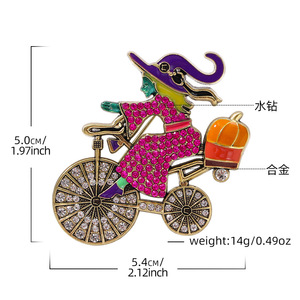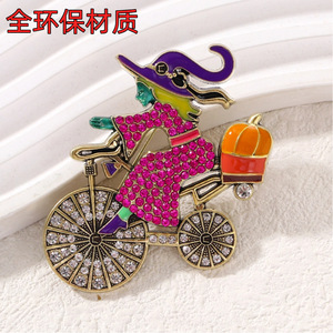 欧美时尚新款女巫骑车胸针万圣节南瓜配饰品跨境新款环保胸花别针