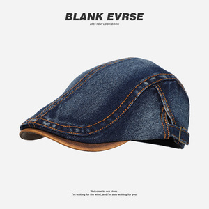 日系复古水洗牛仔前进帽女文艺百搭反戴报童帽休闲显脸小贝雷帽子