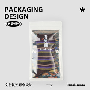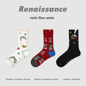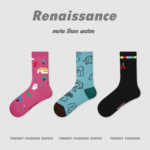 Renaissance袜子女ins潮秋冬新款精梳棉卡通人物条纹无骨中筒女袜
