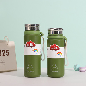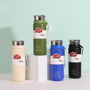 新款316不锈钢保温杯学生大容量弹跳杯户外便捷手拎带茶漏直饮杯