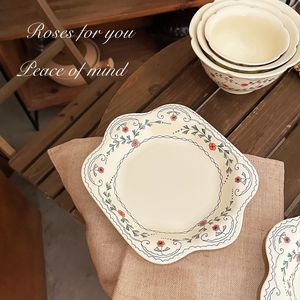 日照柔薇法式复古哑光陶瓷碗碟套装家用早餐碗沙拉碗甜品盘面碗