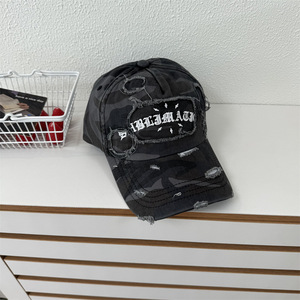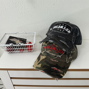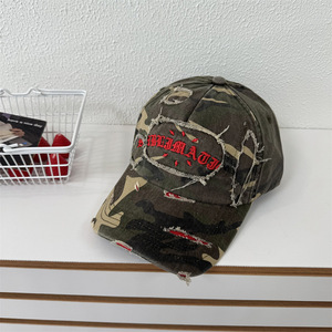 美式复古做旧迷彩字母棒球帽女春夏季新款显脸小帽子大头围鸭舌帽