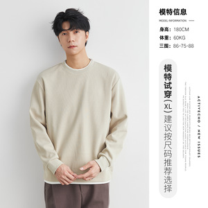 亦止男装310g重磅假两件圆领卫衣男春秋季2025新款撞色男士上衣潮