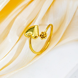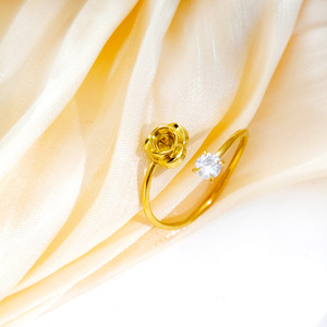 跨境新款复古轻奢钛钢活口四叶草戒指玫瑰花18k金不掉色开口指环