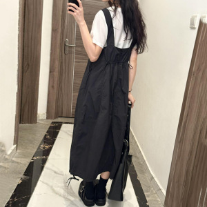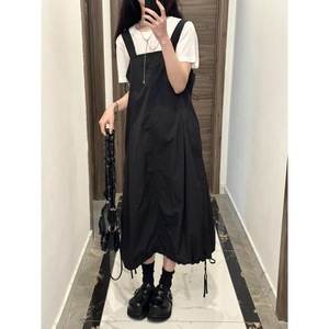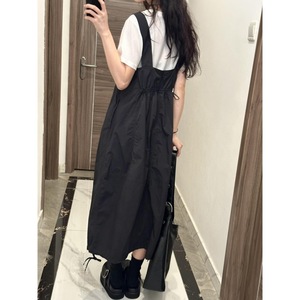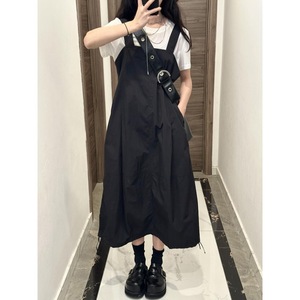 抽绳褶皱背带裙套装女2025夏季新款设计感工装花苞连衣裙两件套