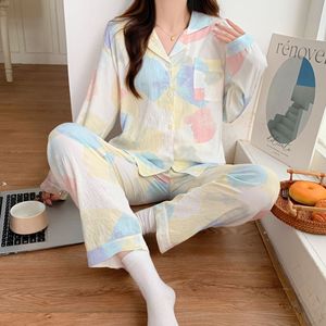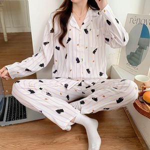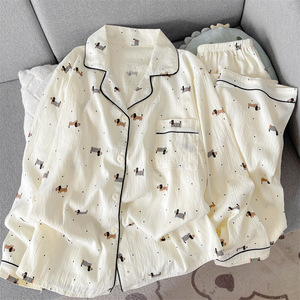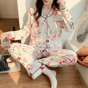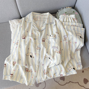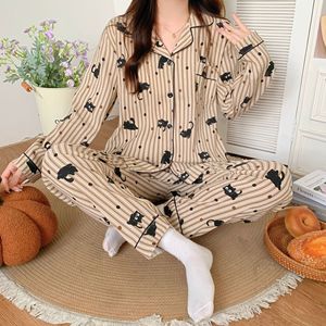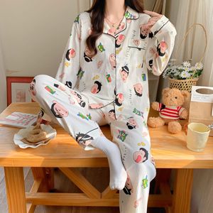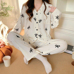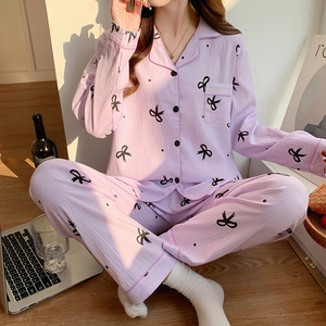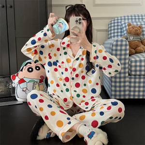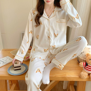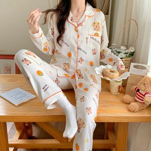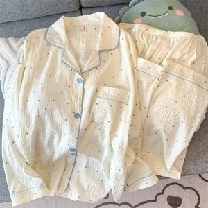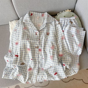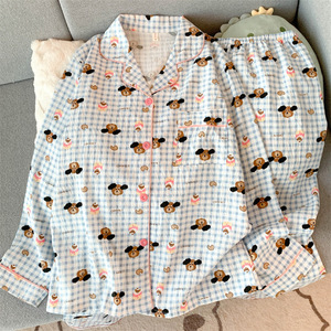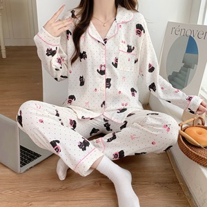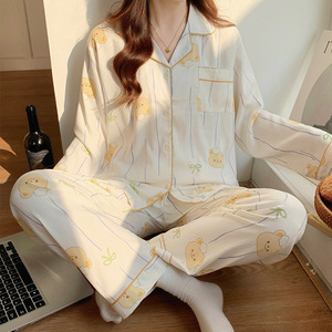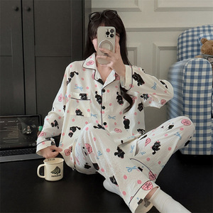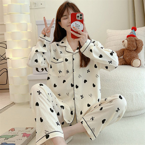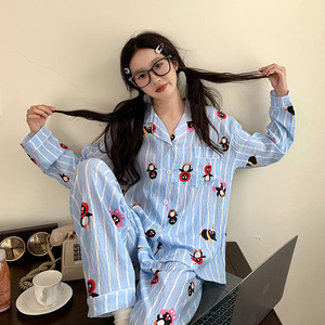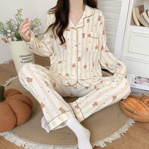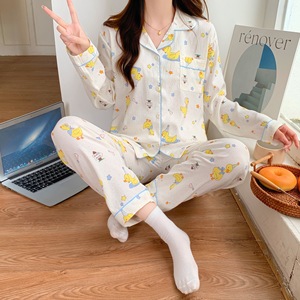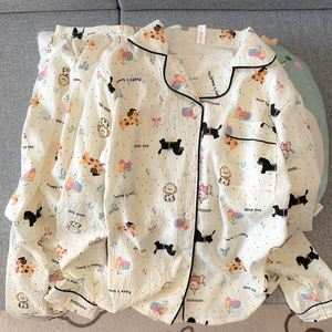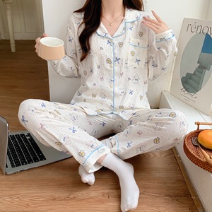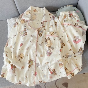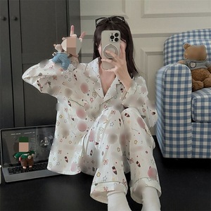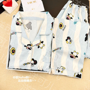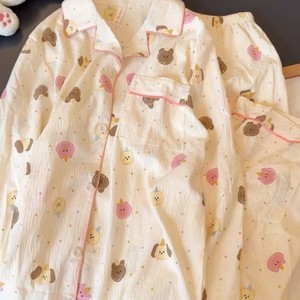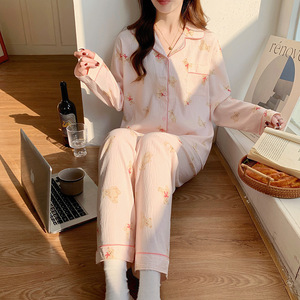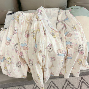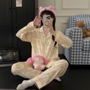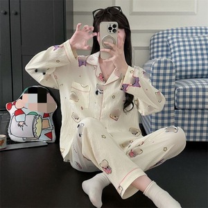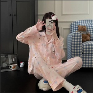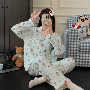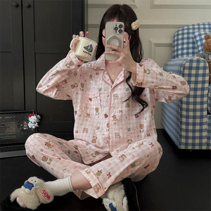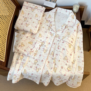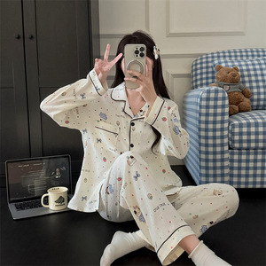 睡衣女春秋季新款云朵棉合集长袖长裤翻领可爱卡通少女甜美家居服