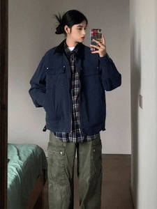 藏青色古着vintage哈灵顿外套男款春季美式棒球服底特律工装夹克