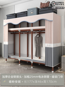 简易衣柜家用卧室布衣柜全钢架加粗加厚出租房结实耐用组装挂衣橱