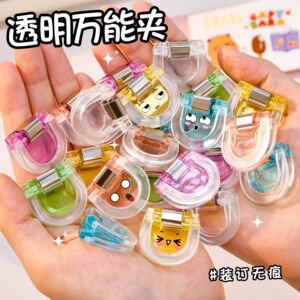 彩色果冻透明夹可爱简约资料试卷收纳夹高颜值桌面文件便签小夹子