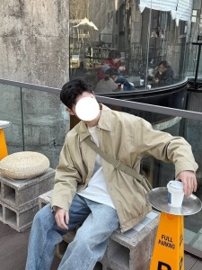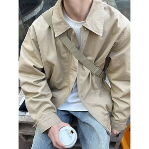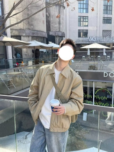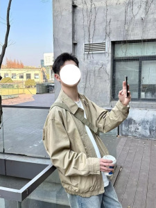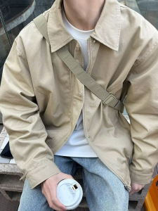 浅色翻领夹克工装男2025新款春秋季百搭宽松休闲潮流夹克外套上衣