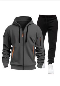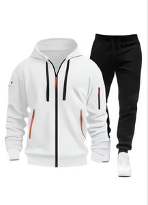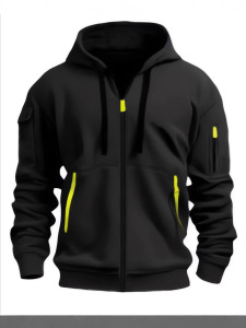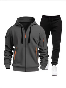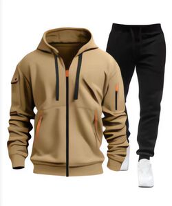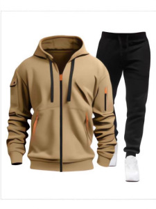 2025跨境春秋新款男士卫衣连帽衫拉链多口袋连帽开衫潮流套装男式