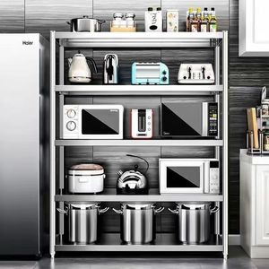 不锈钢色加厚厨房置物架落地多层微波炉烤箱收纳架家用储物整理架