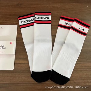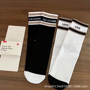 新品LULU露露袜子男女2双装跑步运动瑜伽训练中筒袜速干条纹透气