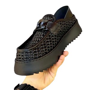 休闲舒适男鞋高品质时尚百搭休闲新品男士真皮手工编织网孔凉鞋