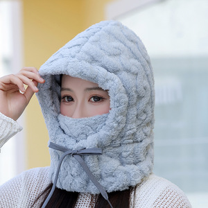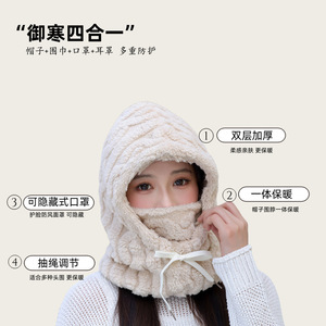 冬季男女同款围巾一体帽男防寒保暖毛绒围脖冬天耳罩显脸小大头围