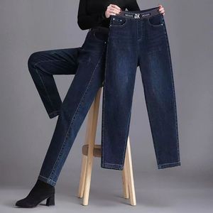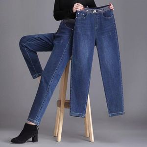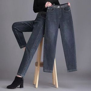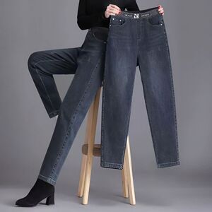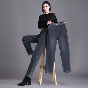 休闲百搭显瘦宽松新款哈伦裤高腰牛仔裤女2025松紧腰裤子春秋韩版