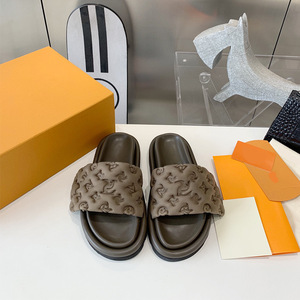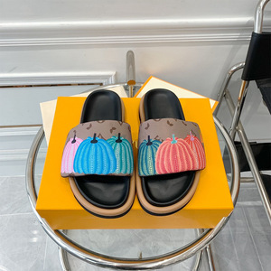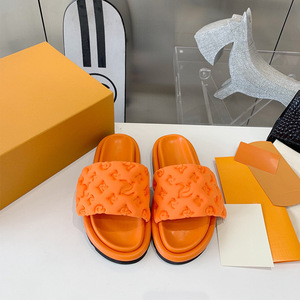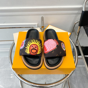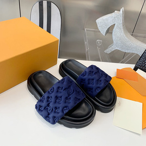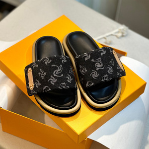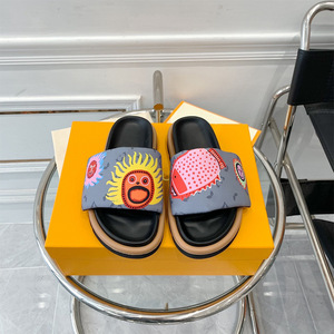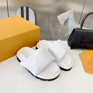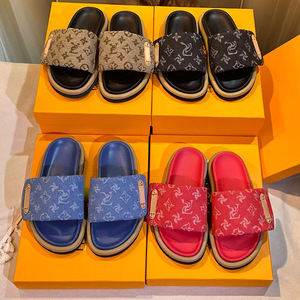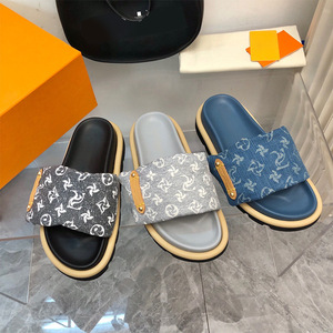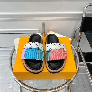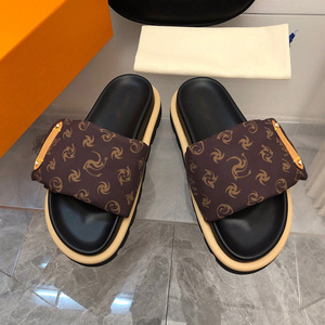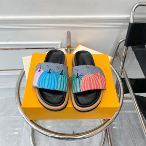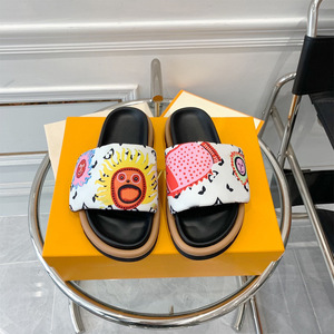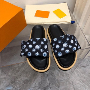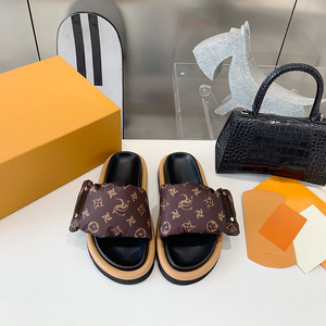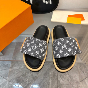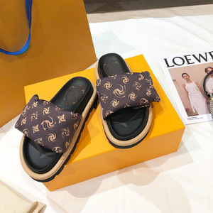 现货魔术贴拖鞋女外穿夏新款百搭休闲印花松糕厚底沙滩一字拖凉拖