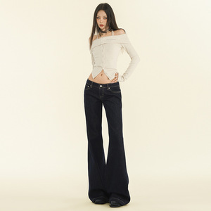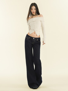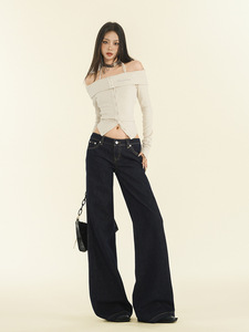 深蓝色低腰微喇叭牛仔裤女2025年秋季新款不贴腿宽松拖地喇叭裤子